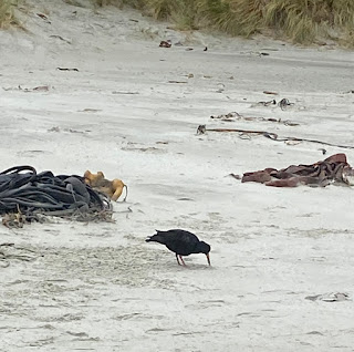 At our first stop, we saw the variable oystercatcher, the white-faced heron, a kingfisher, many pukekos, several plovers, black swans (which we introduced for food), and the Paradise Duck. The Paradise Duck is very interesting, in that it mates for life. If the female dies first, the male starves himself to death, but if the male dies first, the female finds another mate. Below we have a black swan, a white-faced heron, and an oystercatcher.